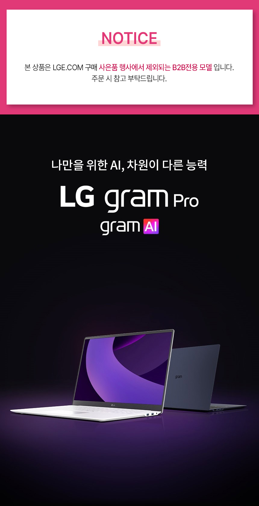 [LG전자] 그램 Pro 40.6cm 노트북 (16Z90TP-GAFWK)/Ultra5 225H/16GB/512GB/WIN 11 홈