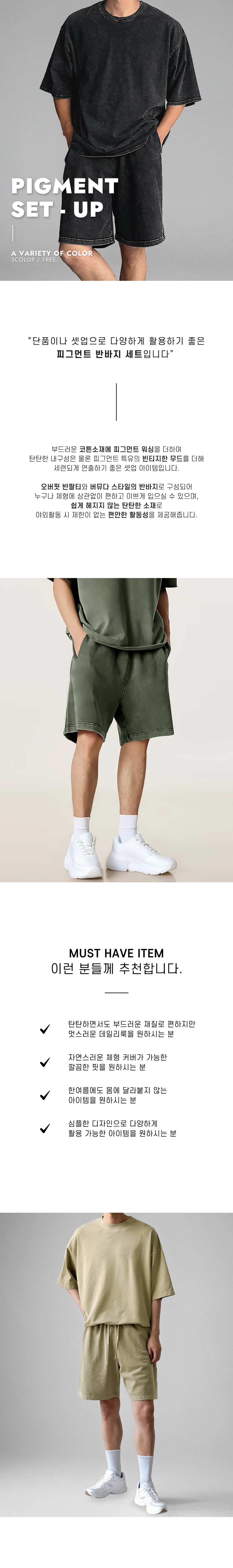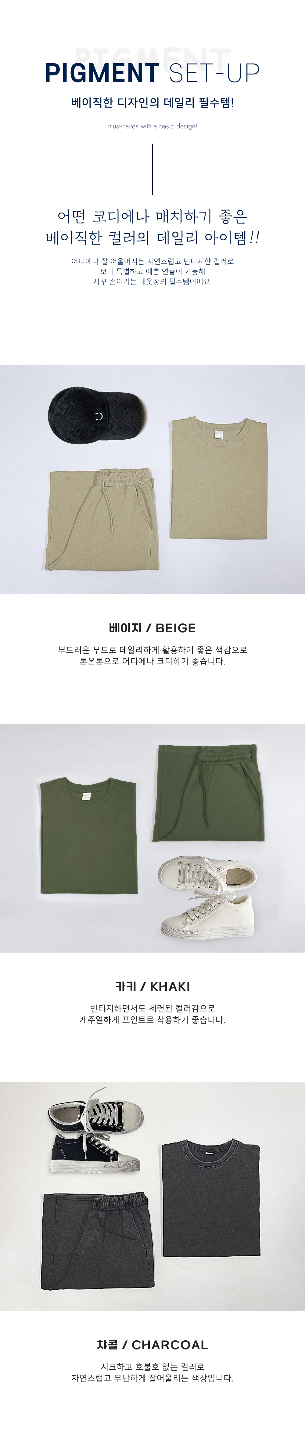 피그먼트 트레이닝복 세트 워싱 반팔 반바지 셋업 남여공용 와이드핏